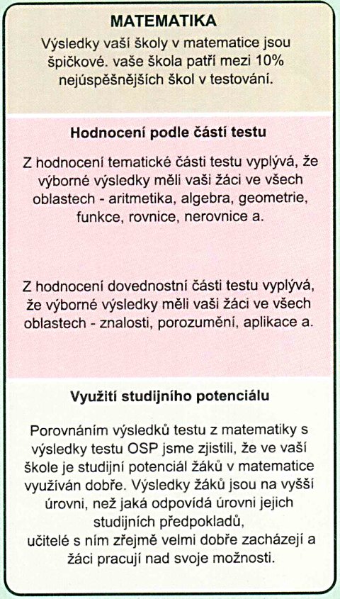 řadíme mezi 10 základních škol s nejlepšími výsledky. Opět bych chtěl zdůraznit,