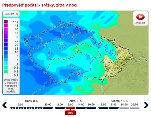 předpokládají deštivé páteční dopoledne, zahraniční meteoservery předpokládají