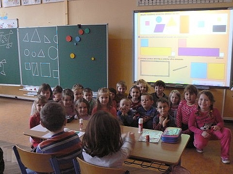 připravili hodinu geometrie. Děti z mateřské školy se aktivně zapojily do práce