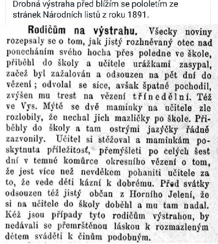 Úsměvná informace z tisku z r. 1891