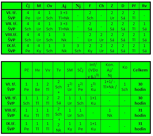 v 6. ročníku je vždy 1x za 2 týdny a alternují navzájem