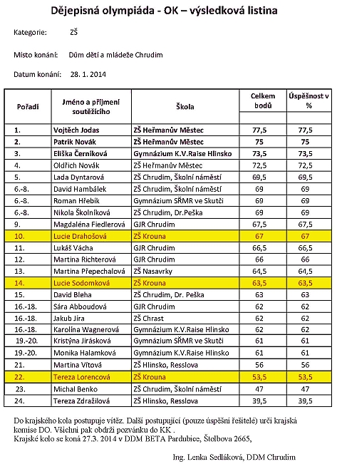 Okresní kolo dějepisné olympiády