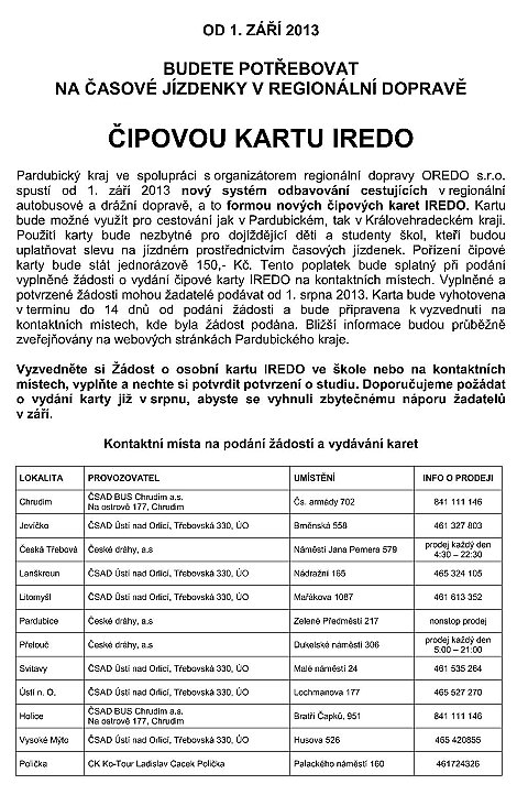 informace by měly postupně být na internetových stránkách Pardubického kraje