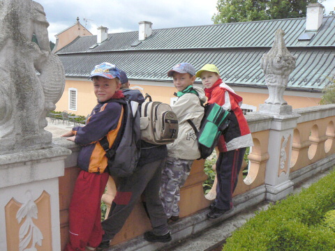 jsme si zámek a zámecké zahrady. Některé děti si vyzkoušely cestu bludištěm