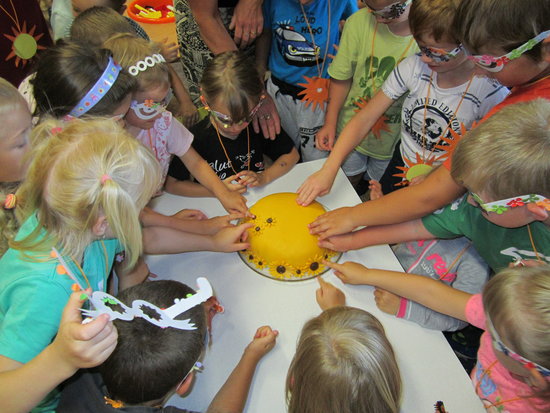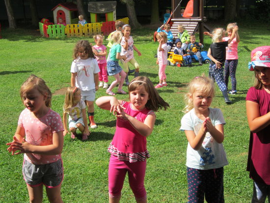 Ve čtvrtek 29.6. si děti ve školce užívaly jedny z posledních společných chvil před prázdninami. Loučení se školáky a se školkou na dobu prázdnin připravujeme každoročně v jiném duchu. Letos se děti za pomoci kouzelných brýlí vydaly na „cestu za sluníčkem“. Se slunečními paprsky si přes překážky došly pro odměnu a dárek. Následovalo sladké občerstvení a když už bylo jasné, že se počasí venku umoudřilo a vítr rozehnal mraky, byl čas přesunout se na zahradu. Tam jsme společně prožili zbytek dopoledne v rytmu oblíbených písniček. Děti si mohly vybrat, zda si zatančí, zahrají si společně hry nebo si zasoutěží. Po tolika aktivitách přišlo všem vhod bohaté občerstvení a zdálo se, že dětem ke spokojenosti nechybí vůbec nic…. Tak krásné prázdniny všem!