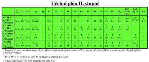 hodin se kterému předmětu v daném ročníku vyučuje.