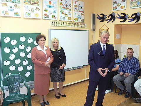je ve škole přivítali zástupci školy (ředitel školy Mgr. J. Kyncl a třídní učitelka