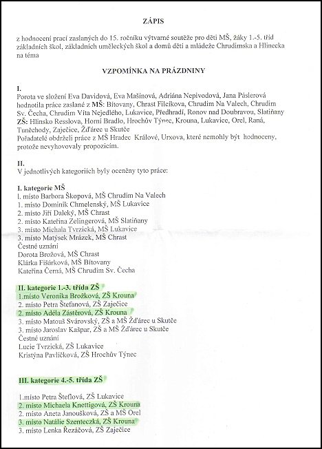 V uplynulých dnech proběhlo vyhodnocení zaslaných prací a naši žáci dosáhli