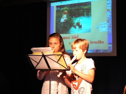 Vítová, Nina Novotná a žáci 5. třídy hráli na flétny, Kateřina