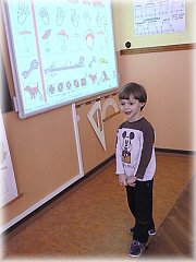 interaktivní tabule, na které děti rozlišovaly základní tvary a barvy a třídily